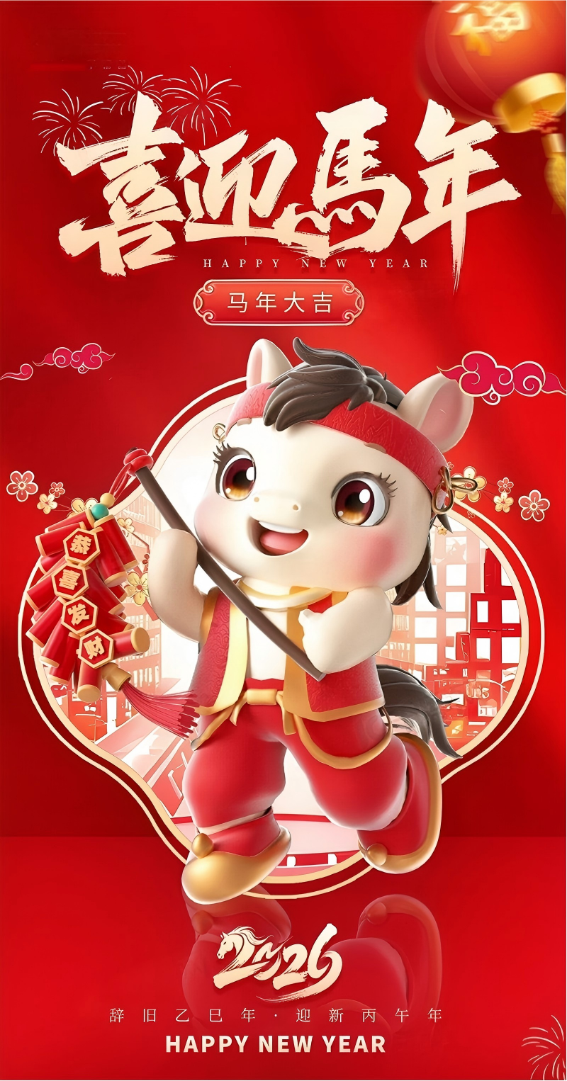 全体员工、各位合作伙伴:律回春渐,策马迎新!2026马年春节将至,为让全体员工度过一个祥和、团圆的新春佳节,结合国务院办公厅2026年春节放..........